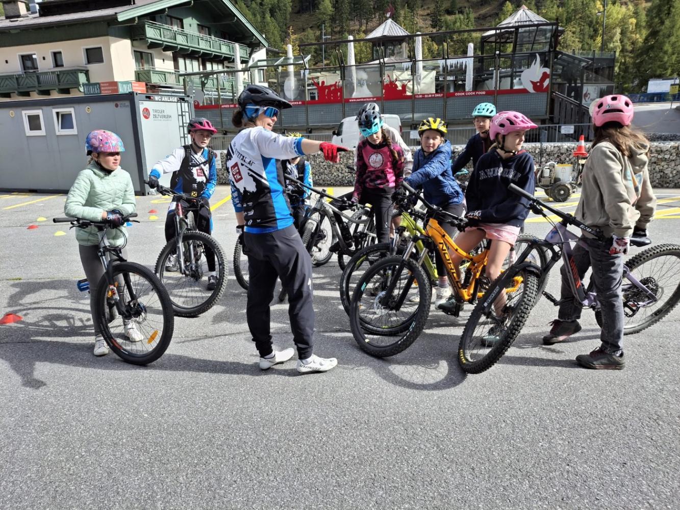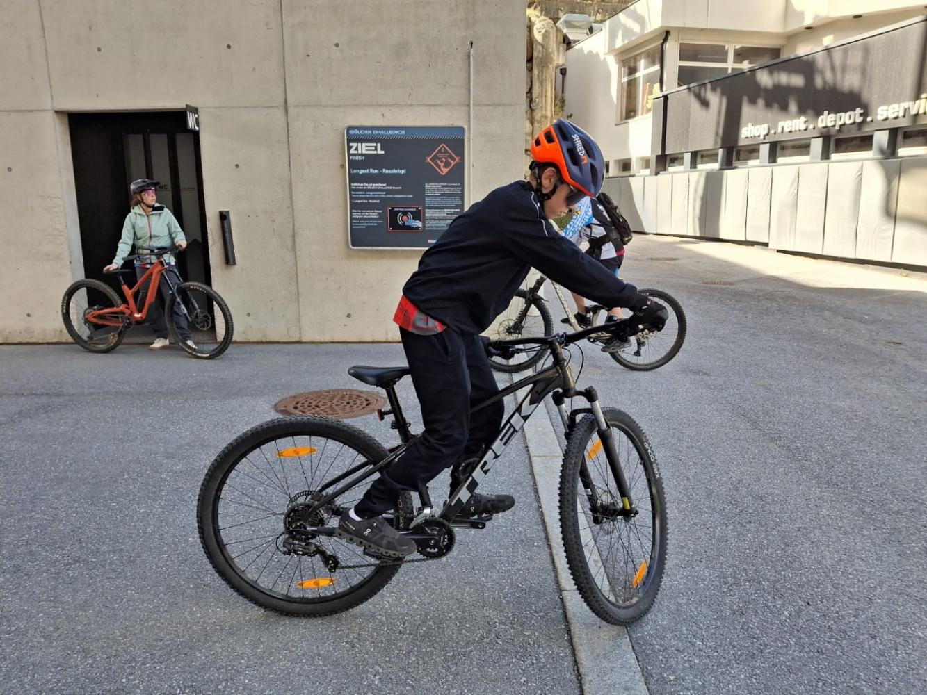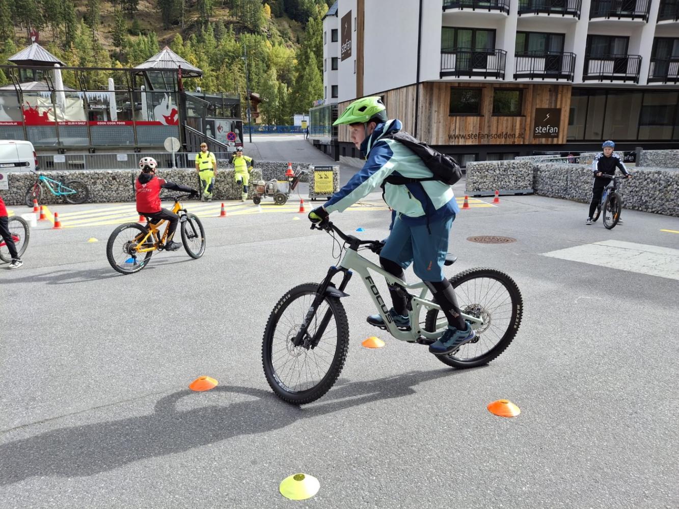 Anschließend stand die Fahrtechnik im Mittelpunkt. In verschiedenen Übungen trainierten die Schülerinnen und Schüler das sichere Bremsen, die Kurventechnik und das Gleichgewicht. Mit viel Freude und Einsatz verbesserten sie Schritt für Schritt ihr Können auf dem Rad.
