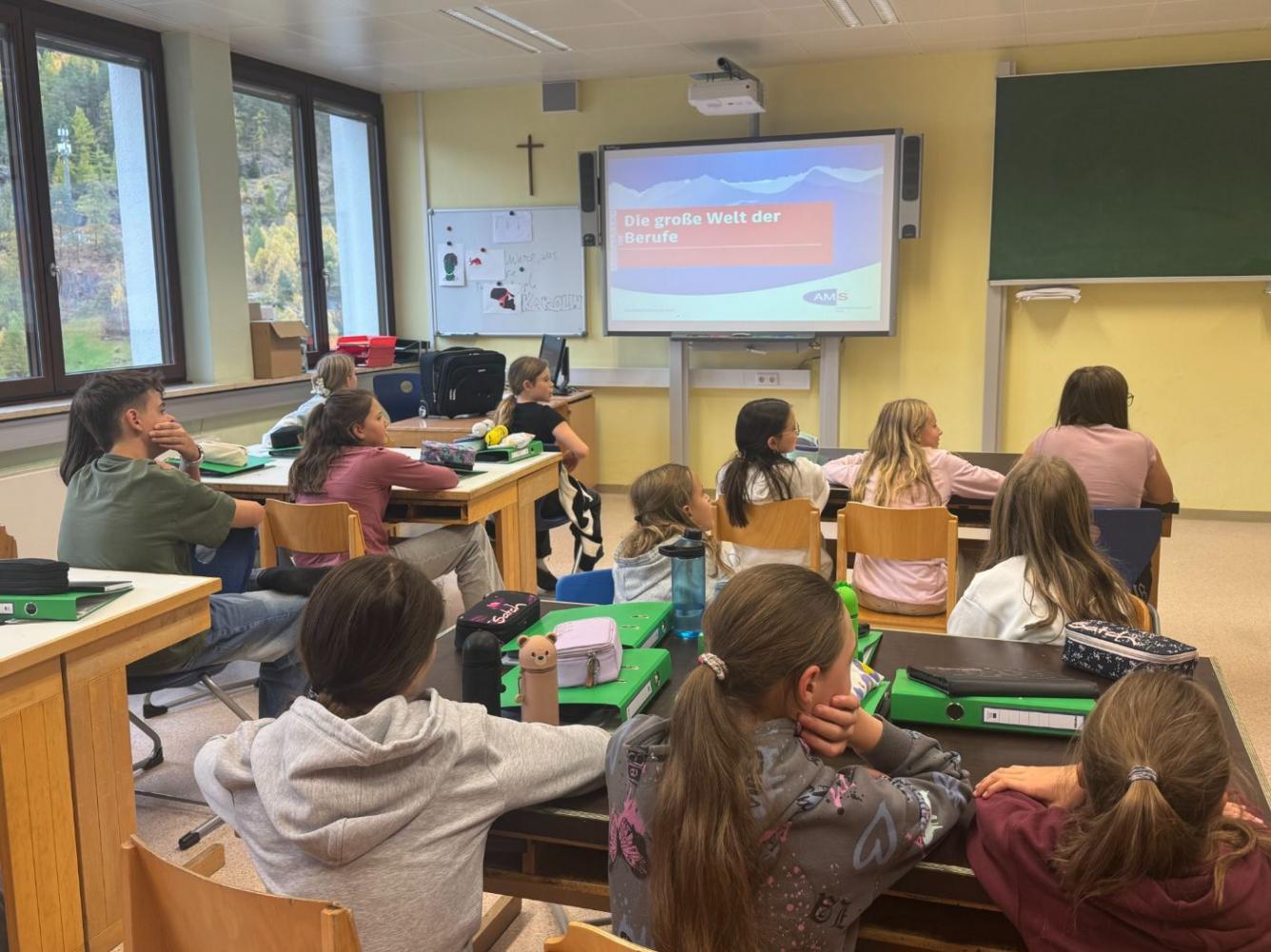 Am 23.10.2025 besuchte Michael vom Berufsinformationszentrum (BIZ) Imst die 3. Klassen der MS Sölden. Im Rahmen des Workshops „Die große Welt der Berufe“ erhielten die Schüler:innen interessante Einblicke in die Aufgaben des AMS, des BIZ sowie in das österreichische Schulsystem.